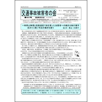 北海道交通事故被害者の会の会報65号(2022年2月15日号)を発行しました。