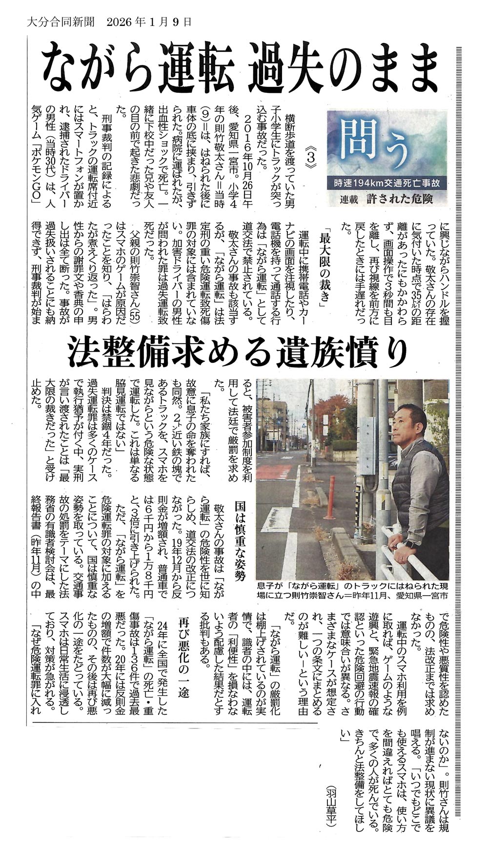 ③「ながら運転 過失のまま」「法整備求める遺族憤り」(2026年1月9日)
