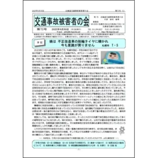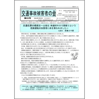 北海道交通事故被害者の会の会報71号(2026/2/15)を発行しました。 ⇒会報73号内容一覧〈特集〉「世界道路交通被害者の日 北海道フォーラム2025」②〜⑫① 新会員より「安全は一人ひとりの選択から~むち打ちの痛みが語る安全の意味~」...