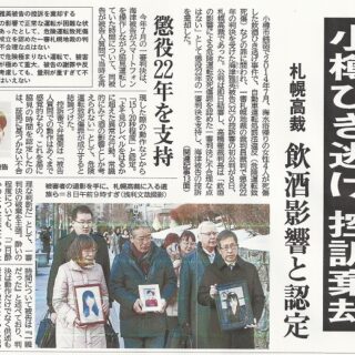 昨年6月6日北海道砂川市の国道で、永桶さんご一家5人が死傷(4人死亡)させられたという悲惨な事件から1年4ヶ月、飲酒の上、共謀してレースまがいの暴走行為を行った2名の加害者を裁く裁判員裁判が、10月17日から札幌地裁で行われます。 以下は、...