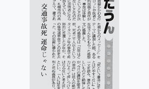 交通死ー遺された親の叫びⅠ(2013~1998) 【コラムNo.012】2003/3/3 運命 今日はひな祭り。八年前までは、二人の娘の成長を喜ぶ華やいだ日だった。しかし、長女が交通犯罪の犠牲となり、泣きながら飾りつけをした七年前からは、無念をかみしめる日に変わってしまった。仏壇の横に今年も飾られた人形だが、最近では寂しさと怒りをたた... 2003.03.03 交通死ー遺された親の叫びⅠ(2013~1998)